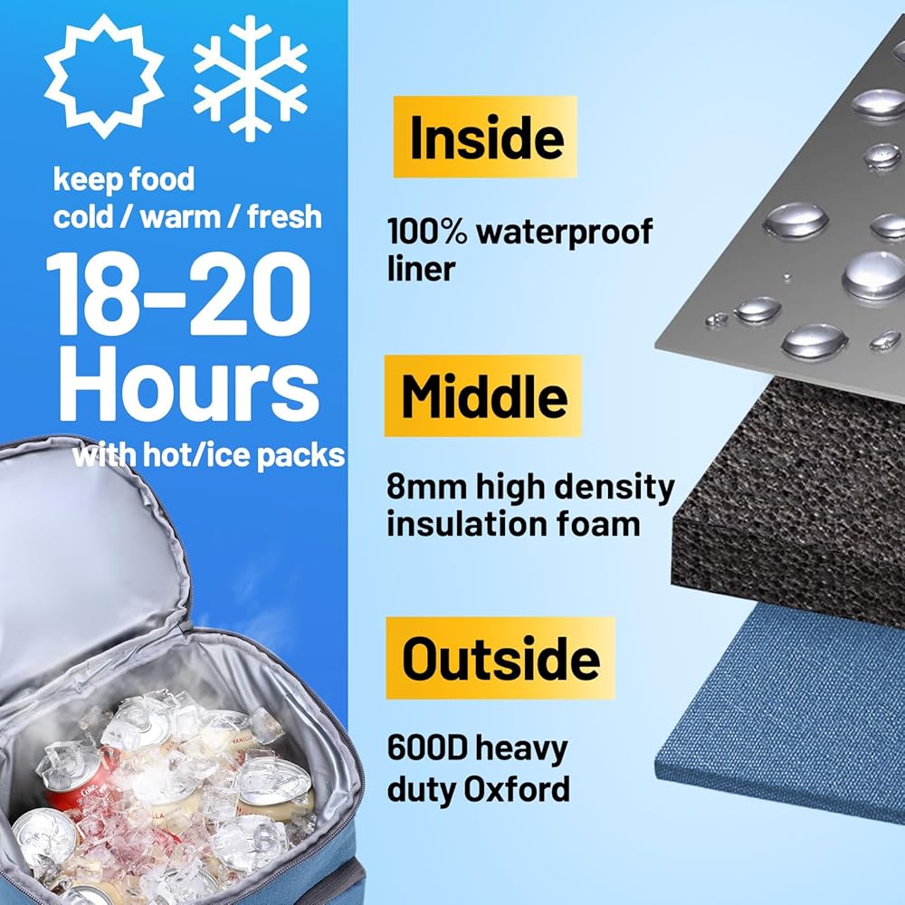 حقيبة الظهر الغداء المضادة للتسرب ---- بطانة PEVA من الدرجة الغذائية تستخدم التكنولوجيا ذاتها التي تحمل حرارة لمنع تسرب بطانة ناعمة ، لا تقلق بشأن الجليد المذاب أو صلصة الانسكاب. من السهل مسح التنظيف