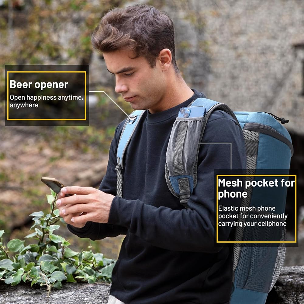 حقيبة تحمل على الظهر البارد الوظيفية مع مكافأة رائعة ---- جيب الغطاء بسعة كبيرة ، من السهل الوصول إلى محفظتك والنظارات الشمسية وغيرها من الأشياء الشخصية. جيب مفيد للغاية للهاتف الخلوي وفتحة بيرة واحدة على الأشرطة