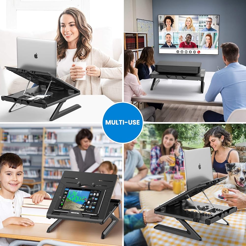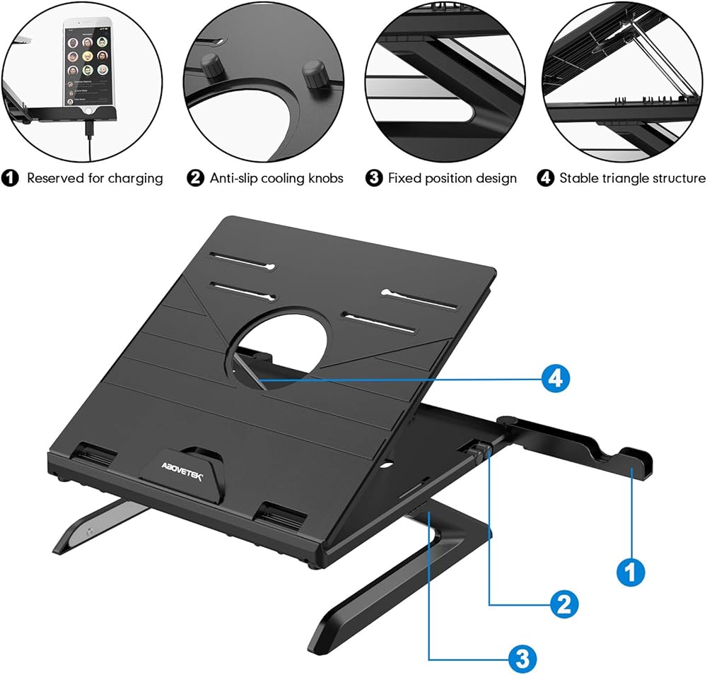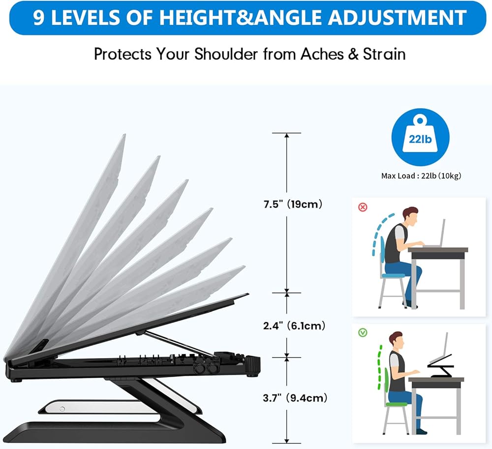 قابلة للتعديل ، الإغاثة المريحة - تسع طرازات الطول والزاوية المحمول القابلة للطي ، توفر خطًا رائعًا للبصر ، مما يشجع على الموقف المناسب الذي يعزز الإغاثة لعينيك ومفاصلك وعضلاتك ، حتى خلال أطول الأيام