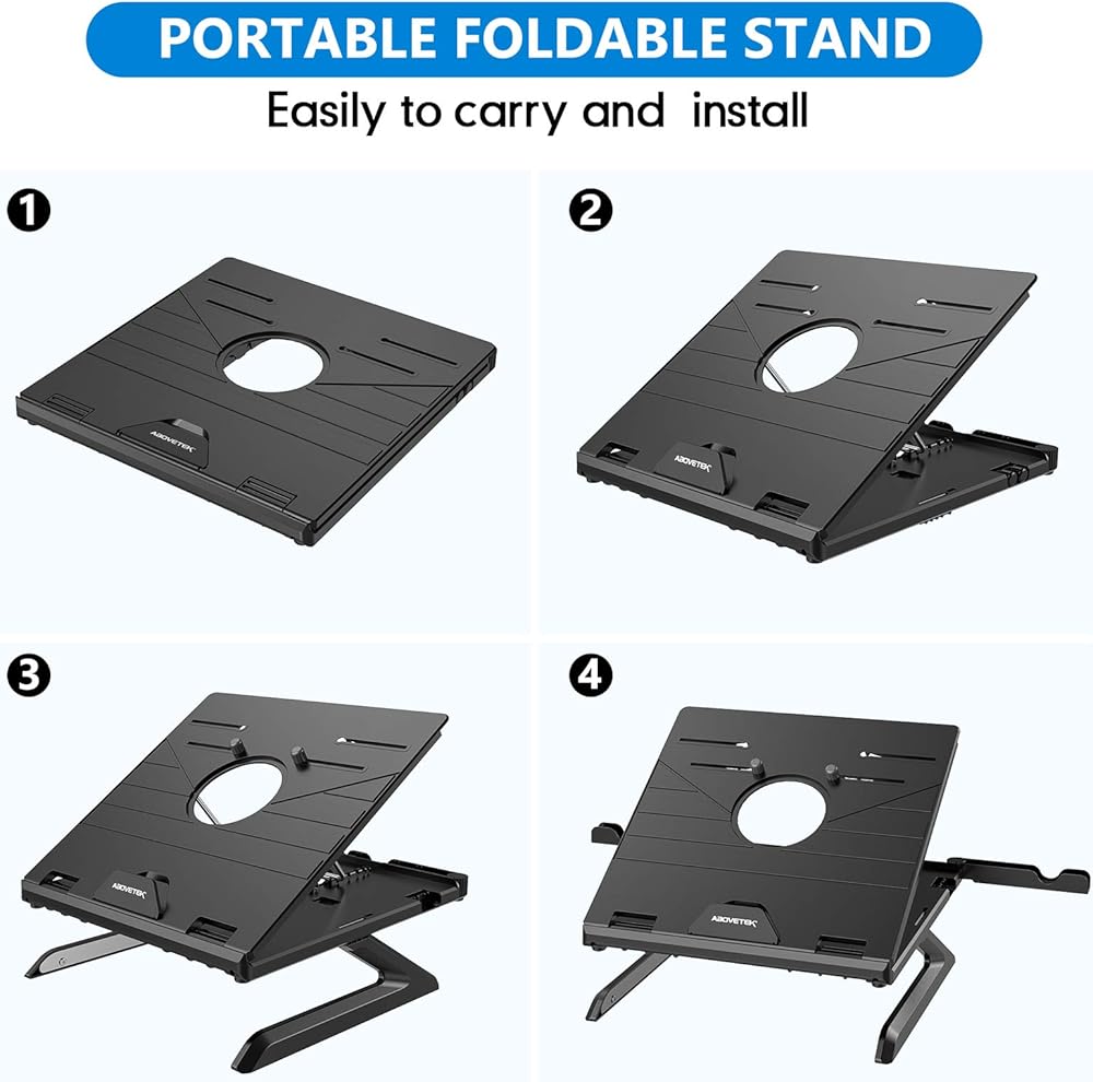 الابتكار في أفضل حالاته - تم تحسينه للسفر والأداء الذروة في المساحات الضيقة ، يوفر حامل الكمبيوتر المحمول Abovetek Genie Book مساحة عمل وفيرة لأكبر حامل كمبيوتر محمول ثم يتحول إلى حزمة صغيرة من حجم الكتب - يمكنك تخزينها أو أخذها في أي مكان