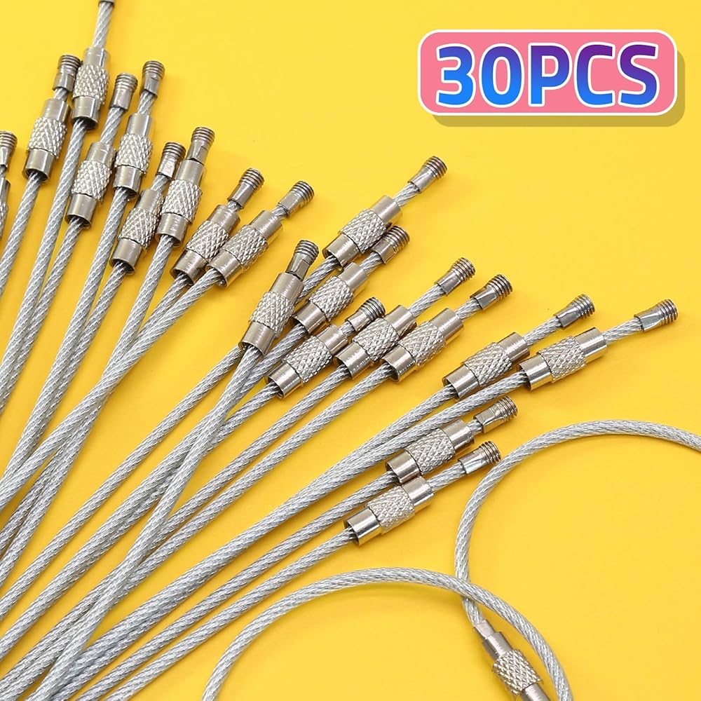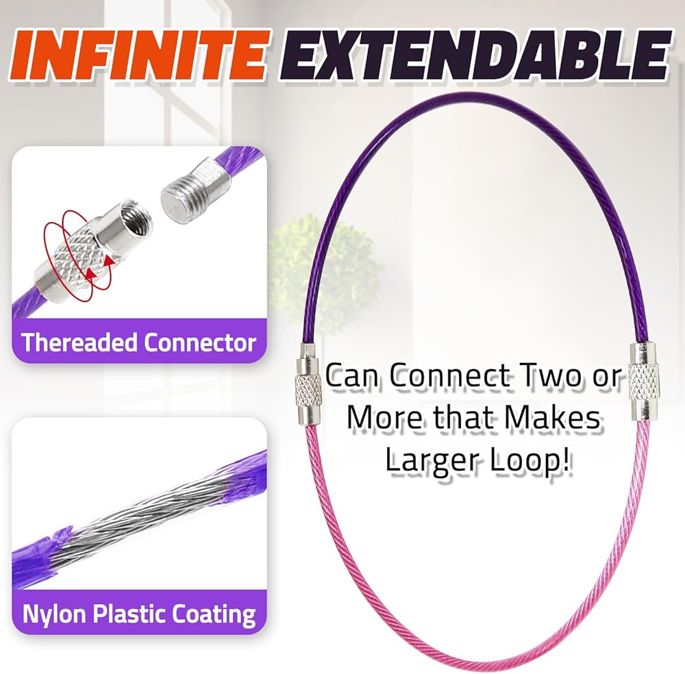 قابل للتعديل وآمن: يتميز بطول 6 بوصات وسلاسل قابلة للاتصال ، توفر هذه الحلقات الرئيسية مرونة لتخصيص الطول حسب الحاجة. الموصلات الملولبة قفل بشكل آمن نهايات الكابل ، مما يتيح إضافة أو إزالة العناصر بسهولة مع الحفاظ على تعليق آمن لمنع الخسارة.