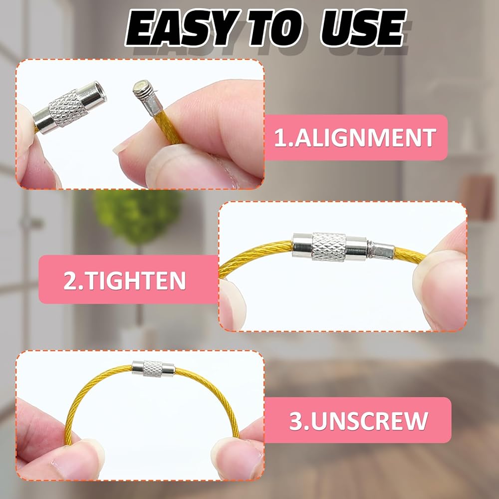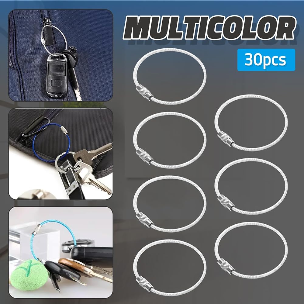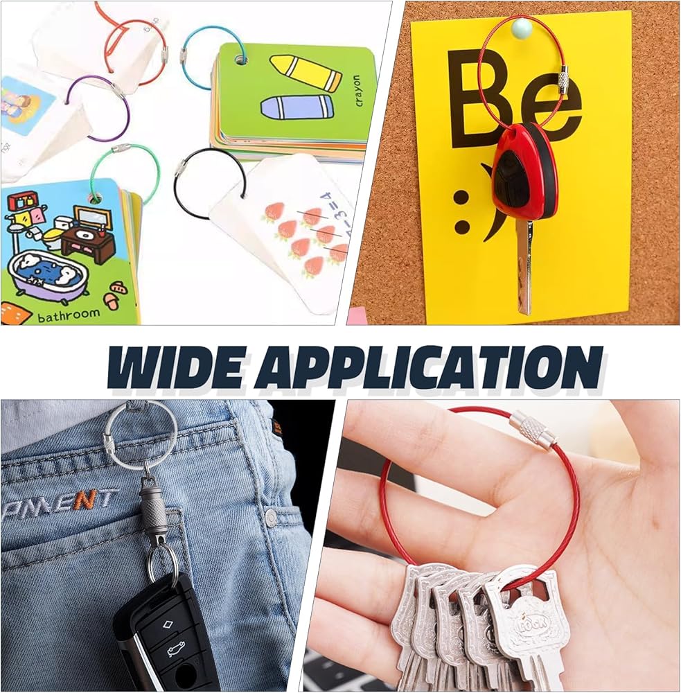 تصميم محمول وخفيف الوزن: مع كبل سلك فولاذي سميك 2 مم يعمل بخفة الوزن ولكنه مضفر بقوة ، فإن هذه الحلقات الرئيسية مثالية للحمل اليومي ، وتتناسب بسهولة مع جيبك مع الحفاظ على ممتلكاتك أثناء التنقل.