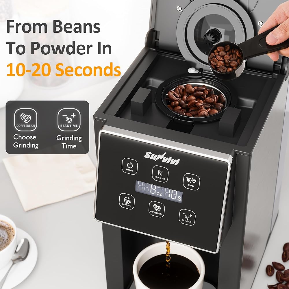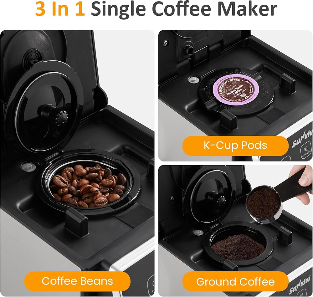 صانع القهوة متعدد الاستخدامات: صانع القهوة هذا يطحن الفاصوليا مع وقت الطحن القابل للتعديل (10-20s) لكوب مثالي. كما يتيح لك التبديل بسهولة بين قرون القهوة والقهوة الأرضية وكبسولات كوب. يأتي مع 3 مقصورات قابلة للإزالة للفاصوليا والأراضي والكبسولات.