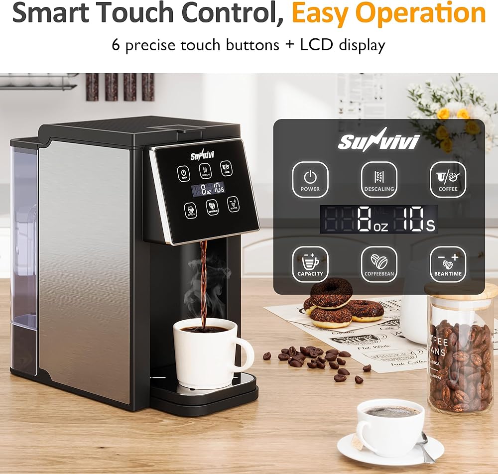 سهل الاستخدام: هل تريد قهوة ساخنة لذيذة في 3 دقائق؟ مع أدوات التحكم في اللمس الذكي وستة أزرار دقيقة ، فإن التشغيل سريع وسهلة. تعرض شاشة LCD حجم القهوة ووقت الطحن. تعمل وظيفة السجل الفريدة على أن تبقي الجهاز نظيفًا لتناول القهوة النقية. استمتع بالمزيج المثالي من الراحة والجودة مع كل كوب.