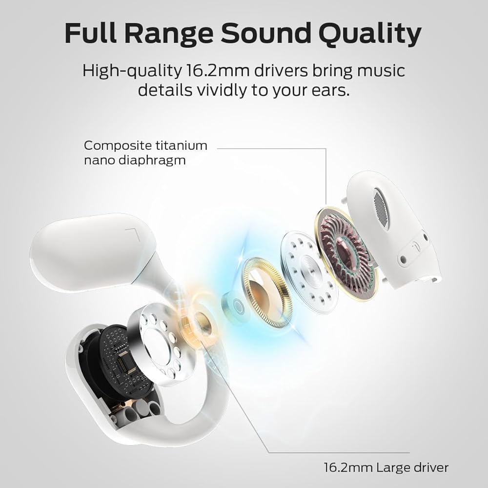 • 【تصميم Open Ore】 يتيح لك تصميم الأذن المفتوح المبتكر الاستمتاع بالموسيقى مع البقاء على دراية بمحيطك ، مما يعزز السلامة إلى جانب توفير تجربة استماع مريحة. يضمن تصميم حافز الأذن المنحني المريح ، المصنوع من السيليكون الصديق للبشرة ، ارتداء آمن أثناء الأنشطة دون الشعور بالتدخل ، ويحافظ على طازجة وخالية من العبء طوال اليوم.