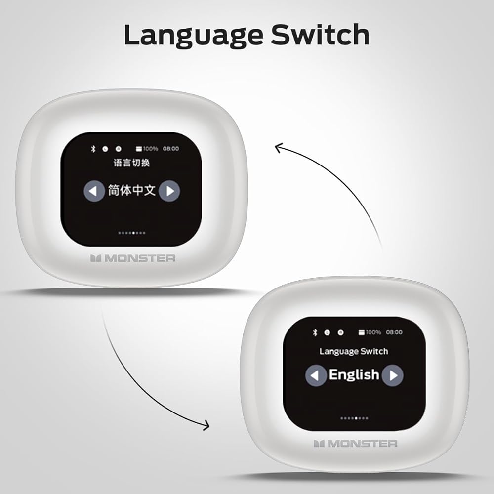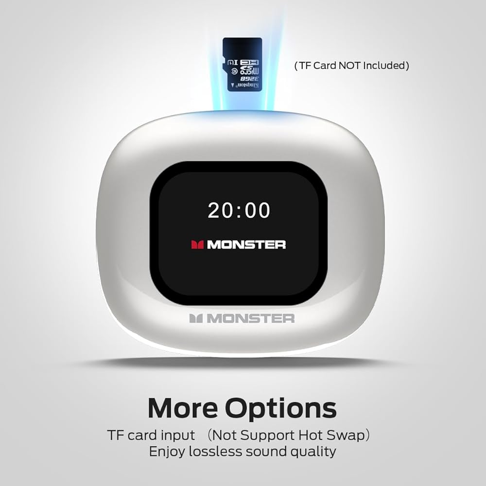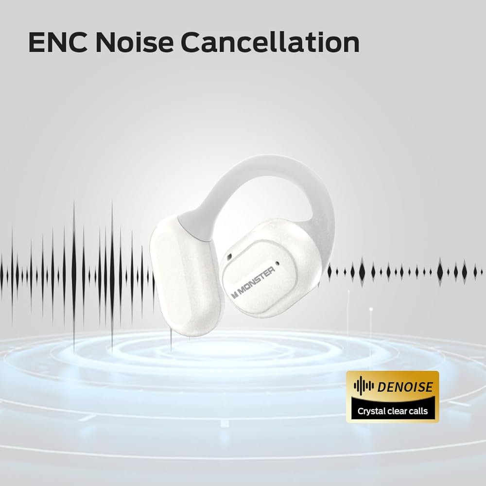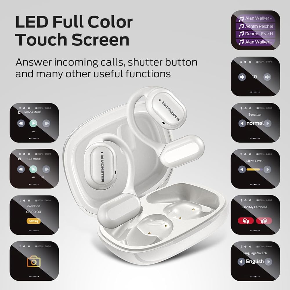 Monster Open Touch Pro 100 ، سماعات أذن مفتوحة لسماعات الأذن ، سماعات أذن الشاشة ، وسماعات الأذن من Bluetooth مع Enc Calk Calle ، ودعم سماعات الأذن اللاسلكية بطاقة TF ، وأساليب EQ ، وملاءمة الراحة ، و IPX5 ، و 30 ساعة تشغيل ، وايت ، أبيض