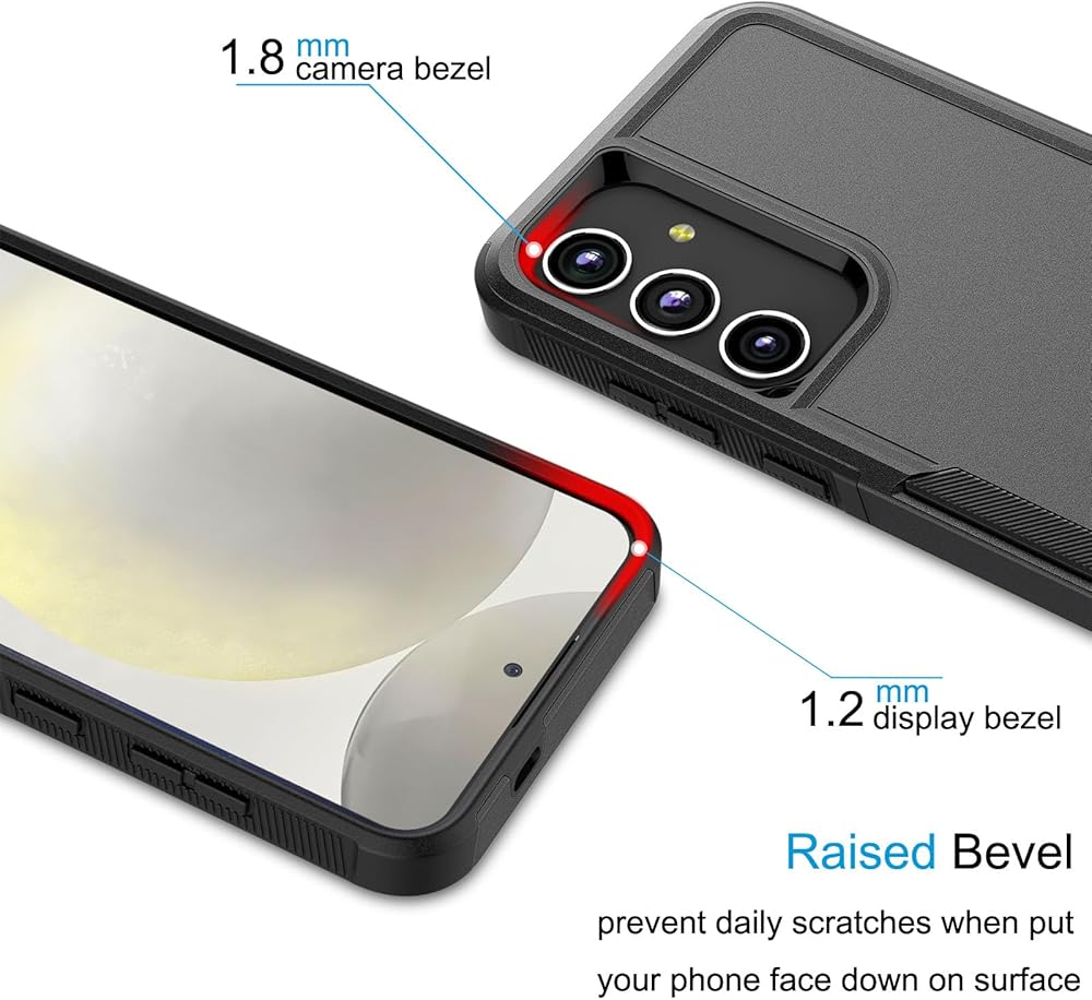 • [Raised Bevel] 1.2mm (0.05 inch) raised Lip lifted bezel on screen and 1.8mm (0.07 inch)camera lens can prevent daily scratches when put your phone face down on surface.wireless charging is available without removing case.