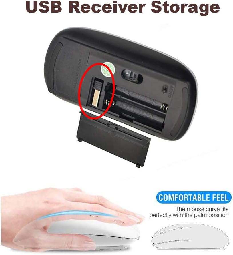 • The mouse utilizes advanced 2.4GHz wireless technology, which brings out a stable signal as well as longer working distance. Just plug the USB receiver into your computer and you are ready to go. No software additions needed. Easy and convenient. Note: The USB receiver is stored in the battery compartment of the mouse.