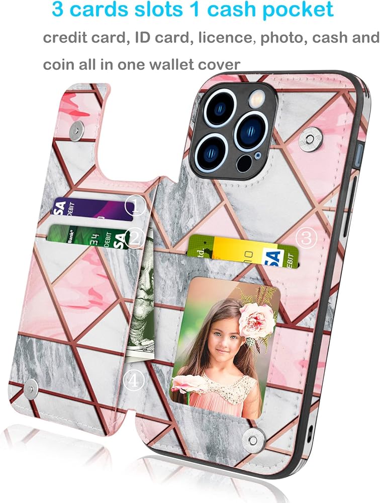 • [Reasonable Storage] Case Compatible For iPhone 14, This cover case is also multi-functional. Built-in 3 card pockets ,1 picture slot& 1 cash slot conveniently store your ID, license, money and credit cards.