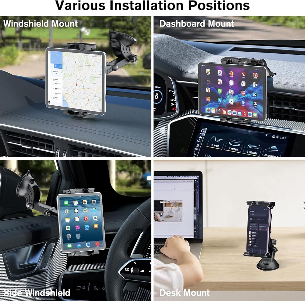 • جهاز الكمبيوتر اللوحي للشاحنة: يمكن تركيب حامل سيارة iPad على جميع أنواع السيارات والجدران والجدول D وفي أي مكان تريده.