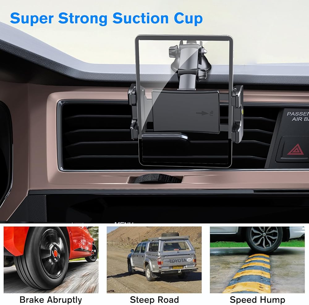 • يتميز حامل الكمبيوتر اللوحي القابل للتنظيف للسيارة : حامل الكمبيوتر اللوحي للسيارة بقاعدة كوب شفط قابلة للغسل. بعد التنظيف ، يجف الهواء قبل الاستخدام. يتم تثبيت حامل iPad للسيارة مع منصات مطاطية في الداخل ، والتي يمكن أن تحمل جهازك بشكل أفضل ومنع الخدوش بشكل فعال.