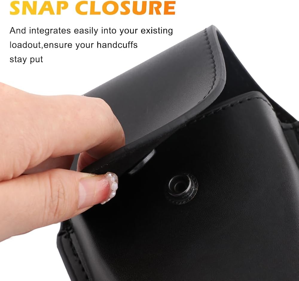 【SNAP CLOSURE】Snap closure on handcuff holder helps to hide better for law enforcement in the dark and looks perfect.And integrates easily into your existing loadout,ensure your handcuffs stay put.
