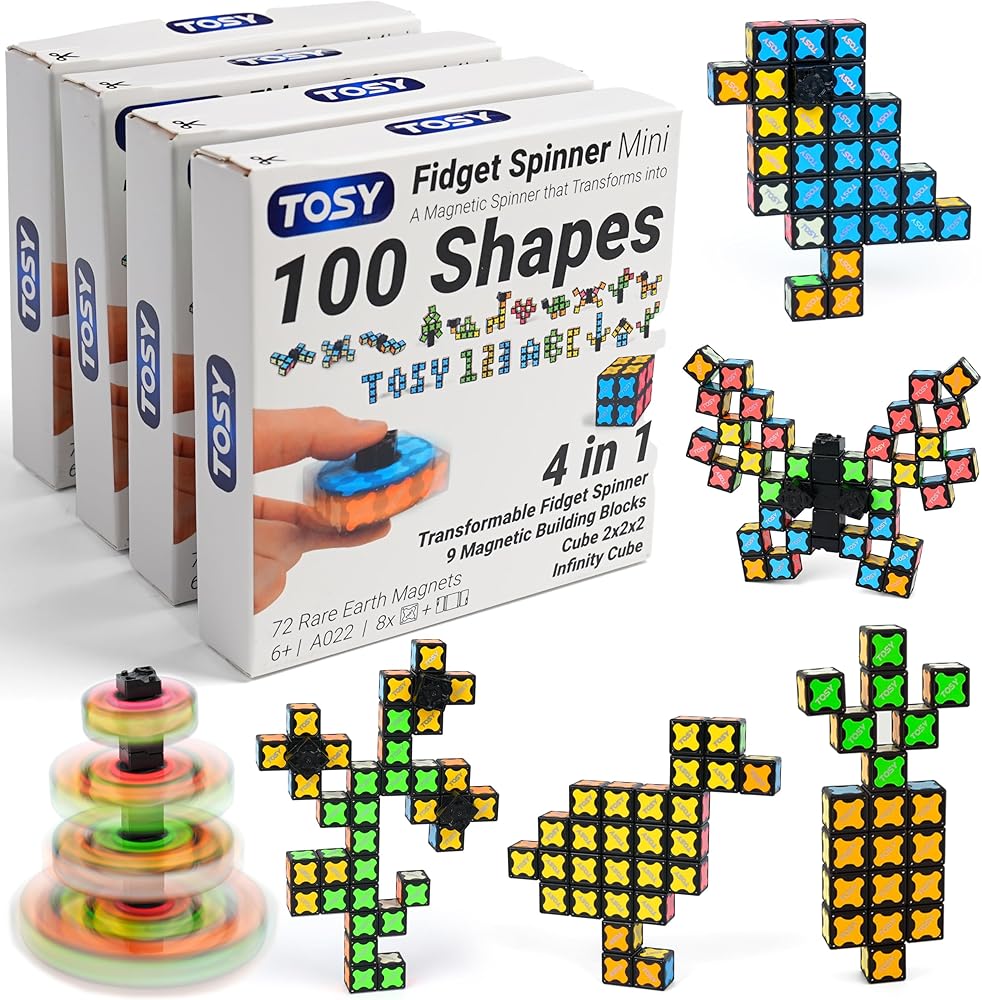 Tosy Magnet Fidget Spinner Mini - 3in1 Toy: Transformable Fidget Spinner مع 72 مغناطيسًا ، مكعب Infinity ، 2x2 Puzzle Cube للمبتدئين ، تخفيف الإجهاد للبالغين ، هدية عيد الفصح Valentine (مجموعة من 4)