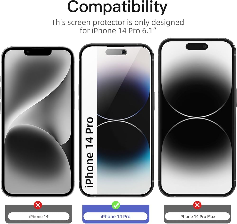 • مجموعة من 3 نظارات مضادة للتجسس لـ iPhone 14 Pro (6.1 ") ، صلابة 9H ، مقاومة الخدوش.