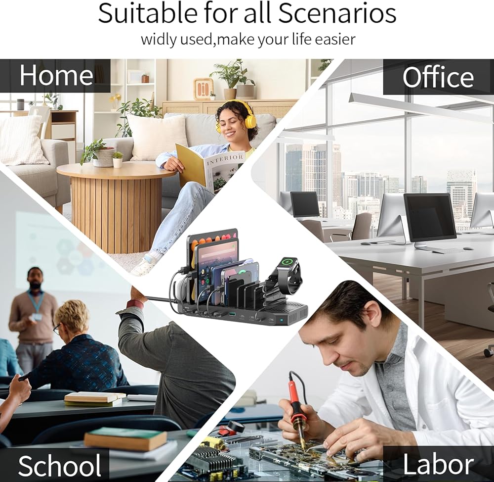 【مقسم قابل للفصل】 مقسم محطة شحن USB متعددة الشحن قابلة للفصل ويمكن إزالتها لسهولة النقل عند السفر. تم تصميمه ليكون مضغوطًا ، ولن يستغرق الأمر مساحة كبيرة أينما كنت تستخدمه.