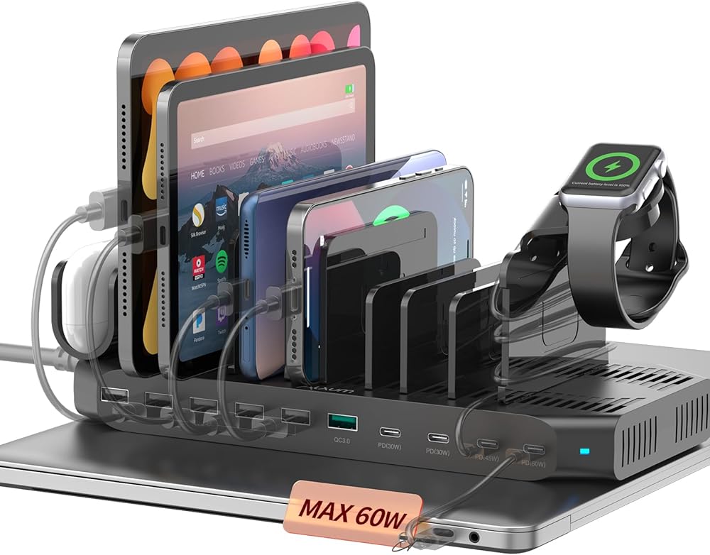 محطة شحن ALXUM 140W USB C -10 محطة شحن سريعة مع QC 3.0 و 4 * USB C PD 60W+45W+30W ، منظم شاحن متعدد الجهاز متوافق مع الكمبيوتر المحمول ، iPad ، الكمبيوتر اللوحي ، والهاتف الخلوي والمزيد