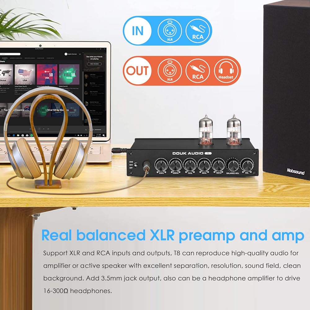 REAL FLUCED XLR PERAMP و AMP: دعم مدخلات ومخرجات RCA ، يمكن لـ T8 إعادة إنتاج الصوت عالي الجودة لمكبر الصوت أو مكبر صوت نشط مع فصل ممتاز ، دقة ، حقل صوتي ، خلفية نظيفة. أضف إخراج مقبس 3.5 مم ، يمكن أن يكون أيضًا مضخم سماعات الرأس لقيادة سماعات الرأس 16-300Ω.