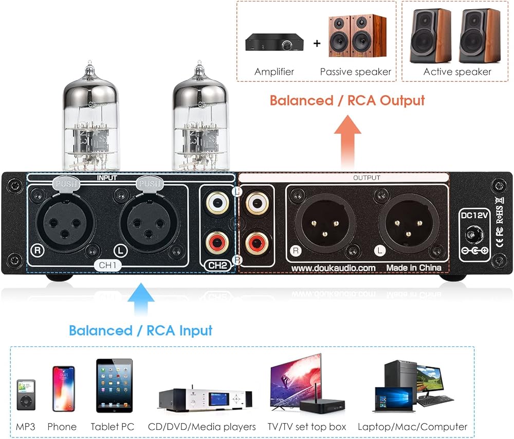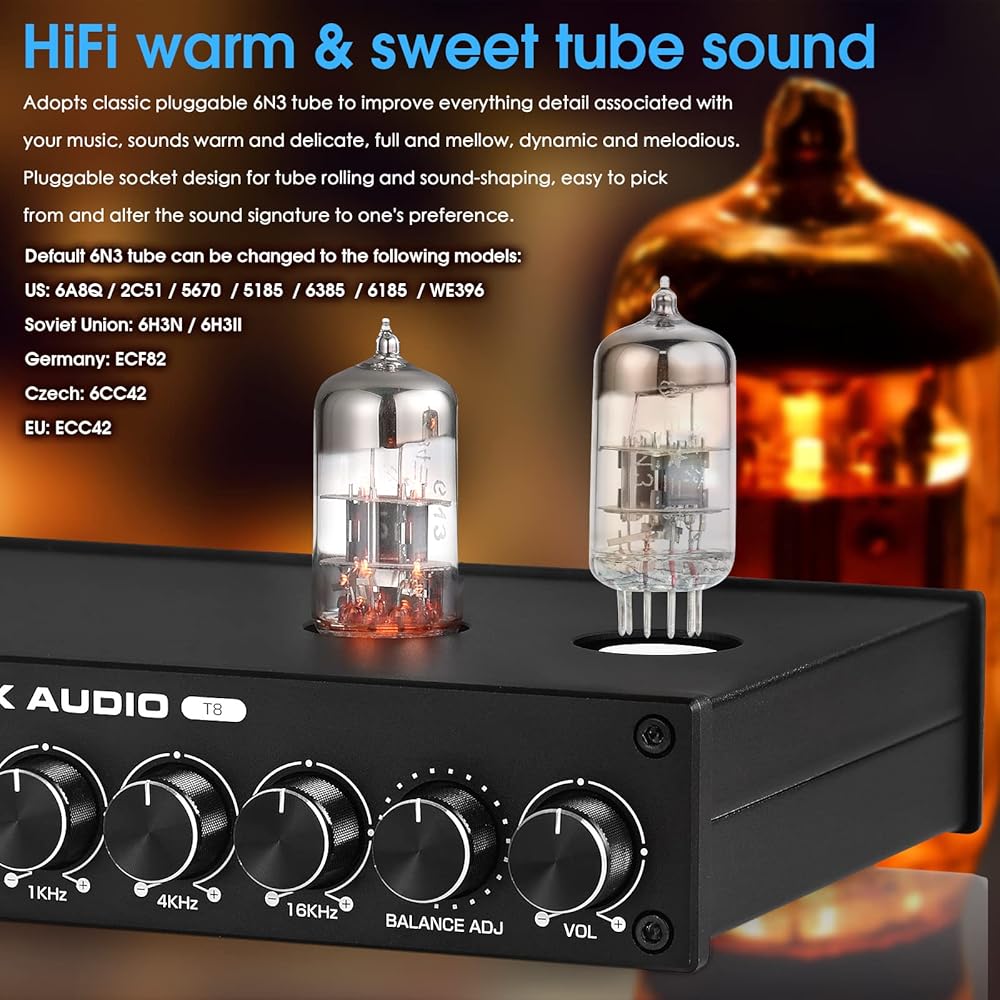 Hifi Warm & Sweet Tube Sound: يعتمد أنبوب 6N3 الكلاسيكي القابل للتجانس لتحسين كل ما يرتبط بتفاصيل الموسيقى ، يبدو دافئًا وحساسة ، ممتلئًا ، ديناميكيًا وحيويًا. تصميم المقبس القابل للتجميع للتداول الأنبوبي وشكل الصوت ، يسهل اختياره من توقيع الصوت وتغييره إلى تفضيل المرء.