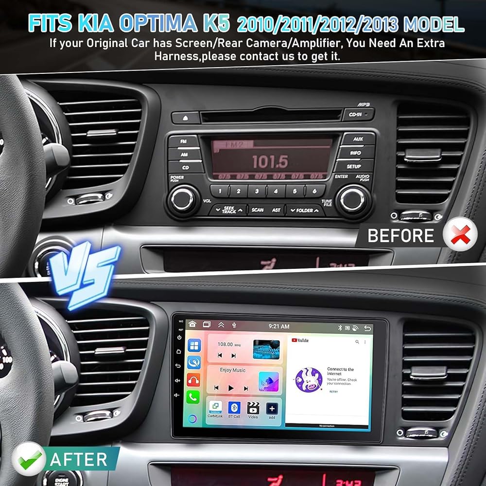 ✅【 بالنسبة لراديو KIA K5 Optima Car】 هذا ستيريو سيارة Android مناسب تمامًا لعام 2010 2011 2012 2013 KIA K5 Optima. تشتمل الحزمة على وحدة الراديو Optima ، وكابل الطاقة ، وكاميرا النسخ الاحتياطي HD 1080p المجاني ، والميكروفون الخارجي ، وهوائي GPS ، وما إلى ذلك. بمجرد توصيل WiFi أو نقطة ساخنة ، ستقود السيارة مع ستيريو سيارة ذكية تمامًا مثل iPad. (: : : : : 𝒏𝒐𝒕𝒆 𝒏𝒐𝒕𝒆 𝒏𝒐𝒕𝒆 𝒏𝒐𝒕𝒆 إذا كانت سيارتك الأصلية تحتوي على شاشة/كاميرا خلفية/مكبر للصوت ، فإن الراديو الخاص بنا لا يناسبها).