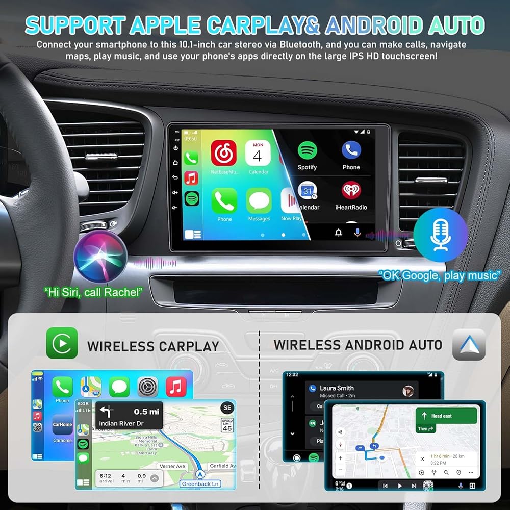 ✅【 Wireless Carplay & Android Auto】 يتوافق راديو Kia Optima Uptgrade Android مع تشغيل السيارات و Android Auto ، بحيث يمكنك استخدام هاتفك بسلاسة على مجموعة شاشة كبيرة بحجم 9 بوصات. إنه يوفر تحكمًا ممتازًا تم تنشيطه الصوتي ، مما يتيح لك الوصول بسهولة إلى وظائف الهاتف ، بما في ذلك الموسيقى ، والتنقل في GPS ، والمكالمات ، والإشعارات ، والرسائل ، وما إلى ذلك ، مع الحفاظ على يديك خالية من القيادة الآمنة! يمكنك أيضًا توصيل Android Auto/CarPlay عبر كابل USB.