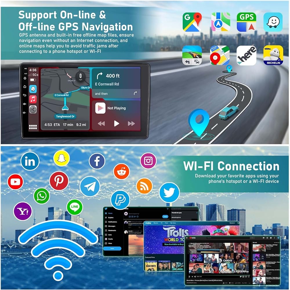 ✅【 GPS Navigation & WiFi】 تحتوي وحدة تنقل KIA Optima GPS على وحدة GPS مدمجة وهوائي GPS الخارجي للتنقل عبر الإنترنت أو غير متصل بالإنترنت. يتم تحميل بيانات الخريطة المتصلة بالإنترنت مسبقًا ، وعلى استعداد للاستخدام بعد التثبيت ، وتشمل اتجاهات الصوت والبصرية ، و 11 مليون مكتبة+ POI ، وطرق ثنائية الأبعاد و 3D ، وتتبع الوقود. يدعم Radio Optima Car أيضًا اتصال WiFi Hot-Spot ، ويمكنك بسهولة الوصول إلى تطبيقات التنقل عبر الإنترنت وتنزيلها ، و Instagram ، و Facebook ، و Tiktok ، وما إلى ذلك في متجر Play.