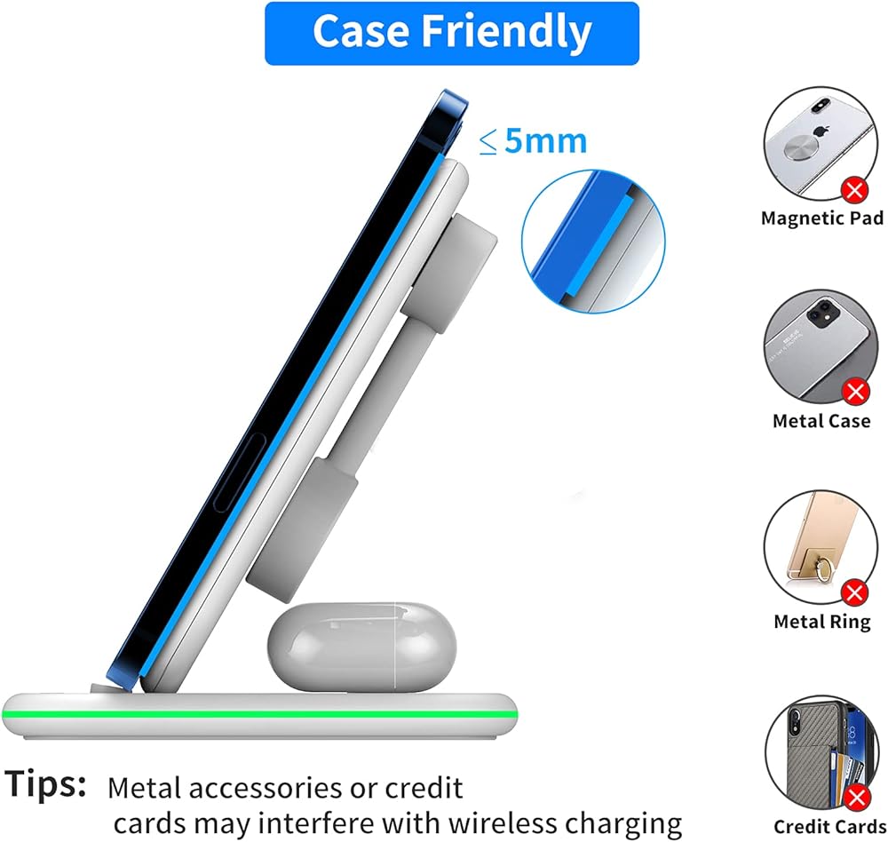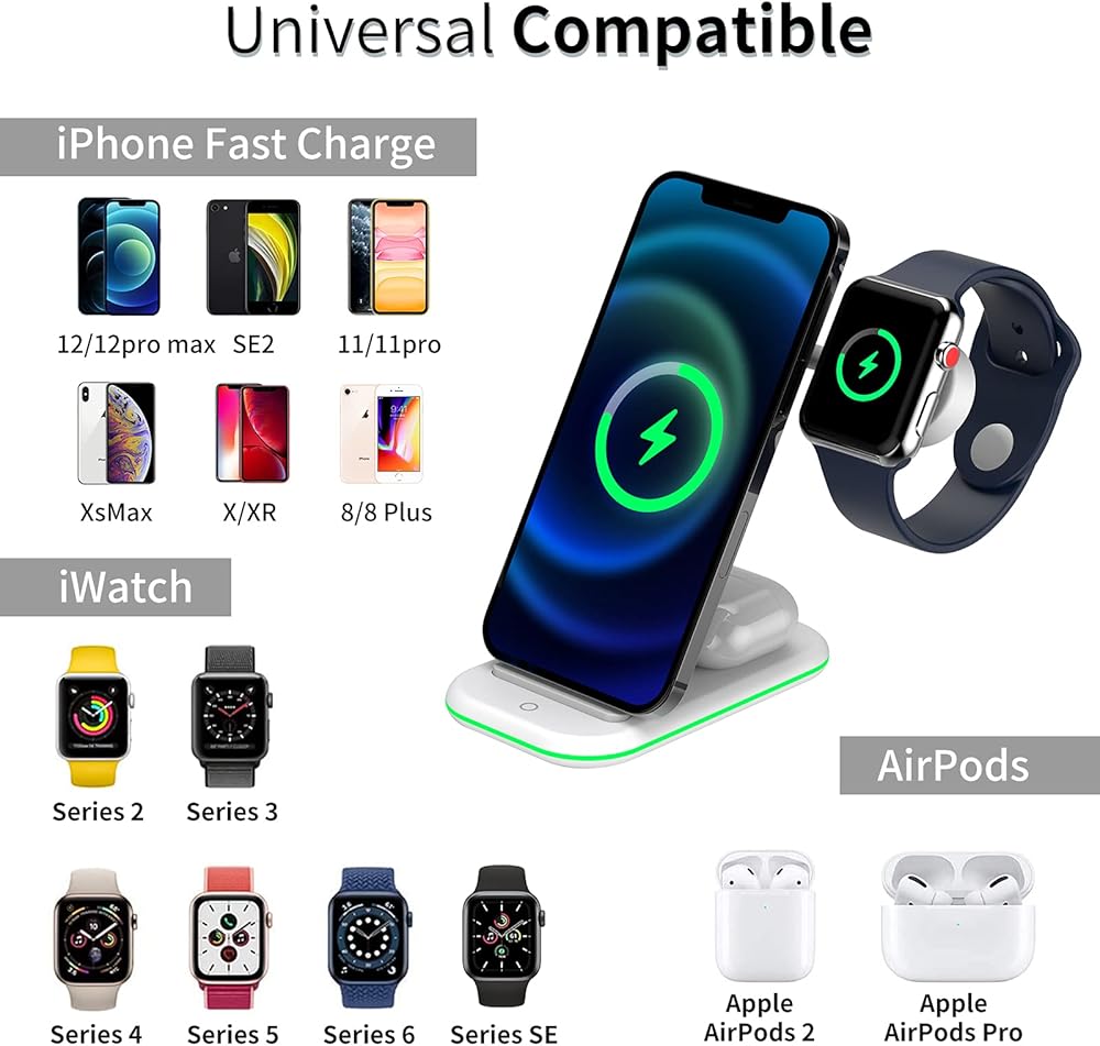 【Extensive Compatible】Compatible with iPhone 14/13/13 Pro/13 Pro Max/12/12 Pro/12 Pro Max/11/11 Pro /11 Pro Max/ XR /XS / XS Max / 8 /8 plus, iWatch 6/5/4/3/2/SE, Airpods pro/2, Compatible with Samsung Galaxy Note10/S10/S10+/S9/S9+/S8/S8+, and more Qi compatible smartphones