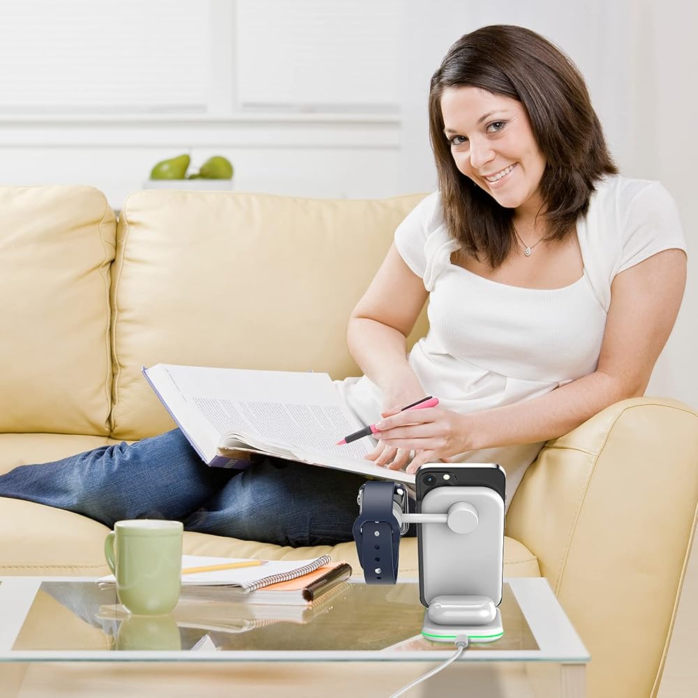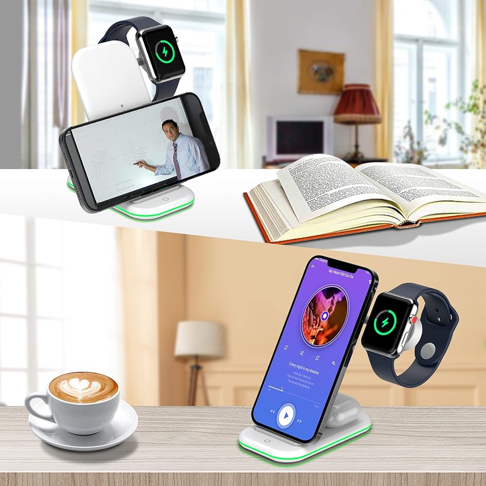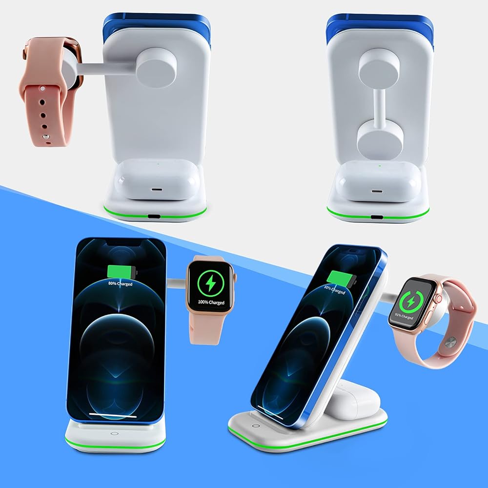 【3 in 1 Wireless Charger】 This wireless charging stand is customized for your iPhone device (phone/watch/Airpods). The Apple charging stand can charge Qi mobile phones, So you can stop suffering from tangled and messy wires,no longer worry about cluttered desktop make your desk and nightstand neatly and organized.