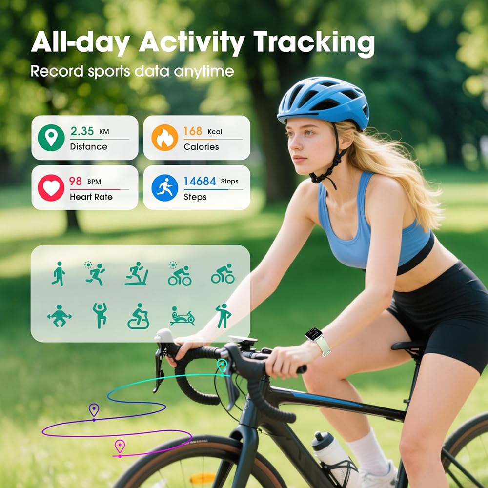 【تم تجهيز مكالمة Bluetooth وتذكير الرسائل لربط التطبيق】 الساعة الذكية مجهزة بأحدث شريحة Bluetooth 5.3 ، مما جعل اتصالًا مستقرًا للغاية دون أي تأخير. أجب وأجري المكالمات مباشرة من معصمك ، ومزامنة جهات اتصال متعددة بسهولة. كما يدعم العديد من التذكيرات الذكية ، بما في ذلك المكالمات الواردة والنصوص ورسائل الرسائل القصيرة (Facebook و WhatsApp و Twitter و Tiktok و Instagram و Gmail وما إلى ذلك). لن تفوت أي مكالمات مهمة أو إشعارات على معصمك.