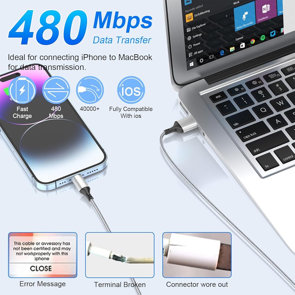 【الشحن السريع ومزامنة شاحن iPhone】: الموصل الأصلي الذي تمت ترقيته حديثًا. يمكن أن تصل طاقة كبل MTAKYI iPhone Charger إلى 2.4A ، والتي يتم ضمانها من خلال الشحن الآمن عالي السرعة ، ويدعم أن سرعة نقل البيانات يمكن أن تصل إلى 40 ~ 60 ميجابايت/ثانية (480 ميجابت في الثانية). هذا أسرع من معظم الكابلات القياسية.