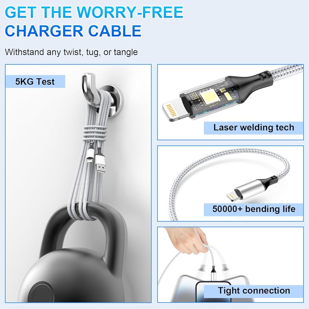 【الثقة تستحق】 ستتلقى كابل iPhone سريع الشحن*1. يحتوي كابل iPhone الخاص بنا على خدمة ما بعد البيع 12 شهرًا ، في حالة حدوث أي استثناء ، أو لديك أي أسئلة حول سلك iPhone الخاص بنا ، يرجى الاتصال بنا في أي وقت ، وسنقدم لك إجابة مرضية ، شكرًا لك على فهمك ودعمك.