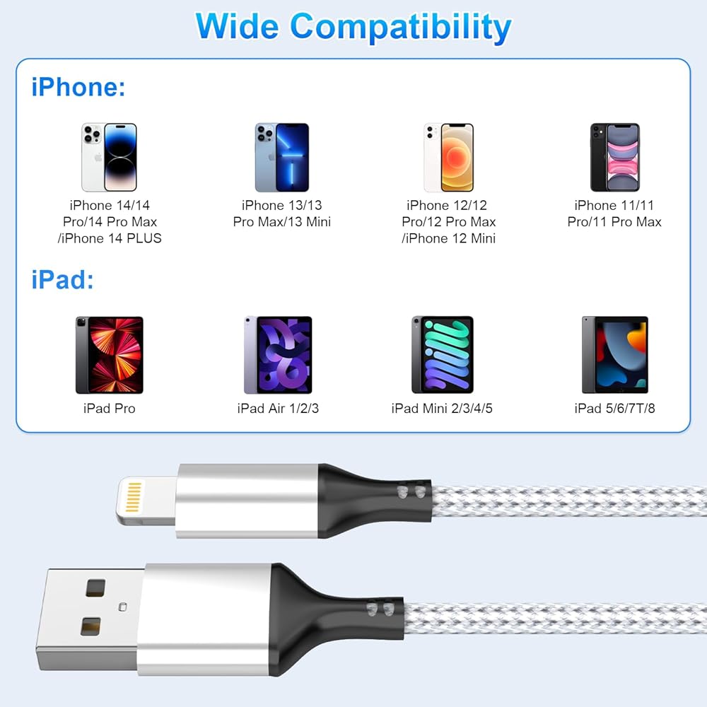 【كبل شاحن iPhone المتوافق المتوافق】: MTAKYI iPhone Charger for iPhone 14/14 Pro/ 14 Pro Max/ 13/13 Pro/ 13 Pro Max/ 13 Mini/ 12/12 Pro/ 12 Pro Max/ 12 Mini/ 11/11 Pro / 11 PRO PAX / XR / XS / XS MAX / X / 10/8 / 8 Plus / 7/7 Plus / 6S Plus / 6S / 6 Plus / 6/5S / 5C / 5 / SE 2020 ، iPad Pro 10.5 -inch/iPad Pro 12.9 بوصة/Pro 9.7 بوصة/Pro 2020/Pro 11/Air/Air 2/Mini/Mini 2/Mini 3/Mini 4/Mini 5/iPad 7th/6th/8th Gen