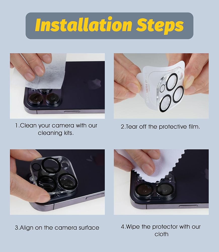 • واقي عدسة الكاميرا: تقنية الامتزاز الأوتوماتيكية الإلكتروستاتيكية النانوية ولا تؤثر على ضوء الفلاش. 99 ٪ HD مع الوضوح والشفافية ، يعيد البكسل الأصلي للهاتف ويحافظ على جودة الصورة الأصلية