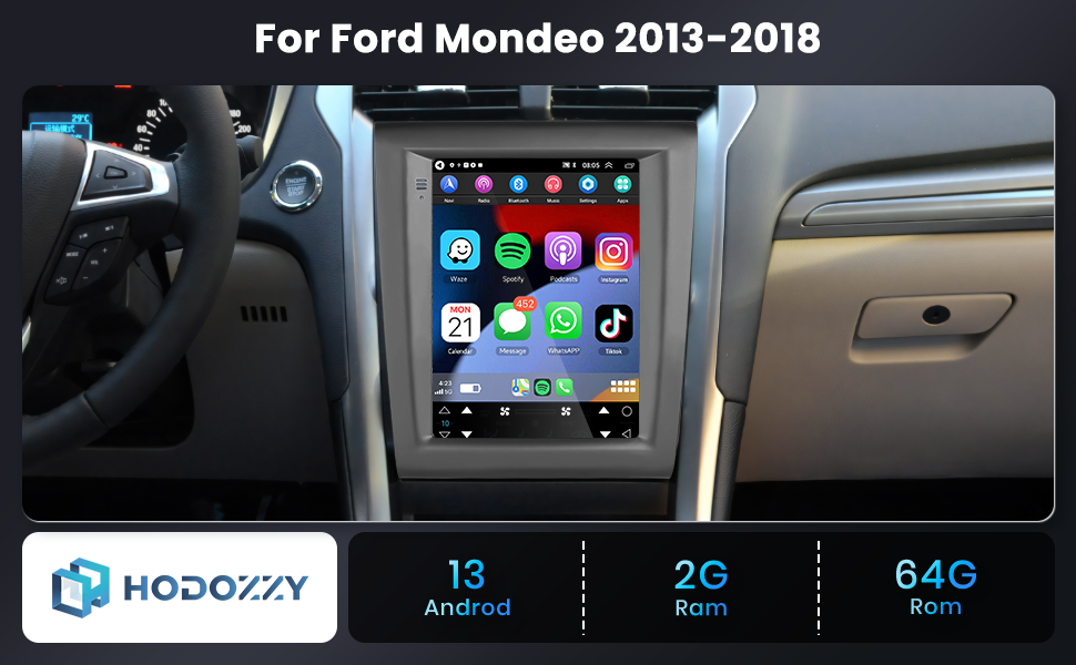 [2G+64G] Android Car Stereo for Ford Fusion Mondeo 2013 2014 2015 2015 2017 2018 2019 Wireless Carplay & Android Auto ، Hodozzy 9.7 inch vertical touch screen gps wifi Bluetooth fm hifi swc+camper