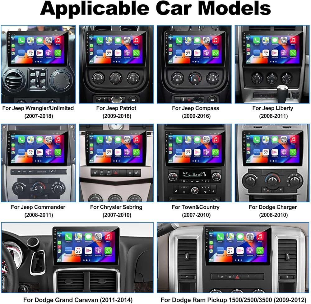 【نموذج رأس السيارة المعمول به】 وحدة رأس الملاحة في GPS في السيارة تناسب جيب رانجلر/غير محدود 2007-2018 ، جيب كومباس 2009-2016 ، جيب باتريوت 2009-2016 ، جيب جراند شيروكي 2005-2011 ، جيب ليبرتي 2008-2011 ، جيب كولاندر 2008-2011 ، Chrysler Sebring 2007-2010 ، Town & Country 2007-2010 ، Dodge Grand Caravan 2011-2014 ، Dodge Charger 2008-2010 ، Dodge AM Pickup 1500/2500/3500 2009-2012. إذا لم تكن متأكدًا