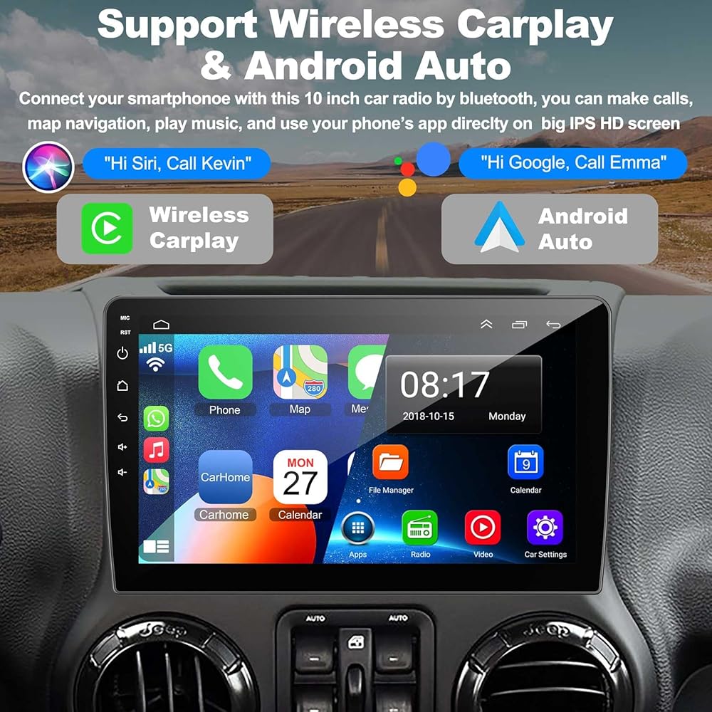 【Carplay Wiredely Carplay & Android Auto】 هذا الجيب Wrangler/ JK Compass/ Grand Cherokee/ Dodge Ram/ Chrylser Car Player يتوافق مع CarPlay IOS و Android Auto يمكن أن يسمح لك باستخدام هاتفك على الشاشة الكبيرة بسلاسة ، يمكنك إجراء مكالمات يديك -بمساعدة من Siri أو Goo-bed مساعدة ، من السهل الحصول على جهات اتصال هاتفية ، ورسائل البريد الإلكتروني ، والإشعارات ، والتنقل في الخرائط ، والموسيقى ، ومقاطع الفيديو ، والمزيد. وهذا يعني أنه يمكنك التركيز أكثر على السلامة على الطرق أثناء القيادة!