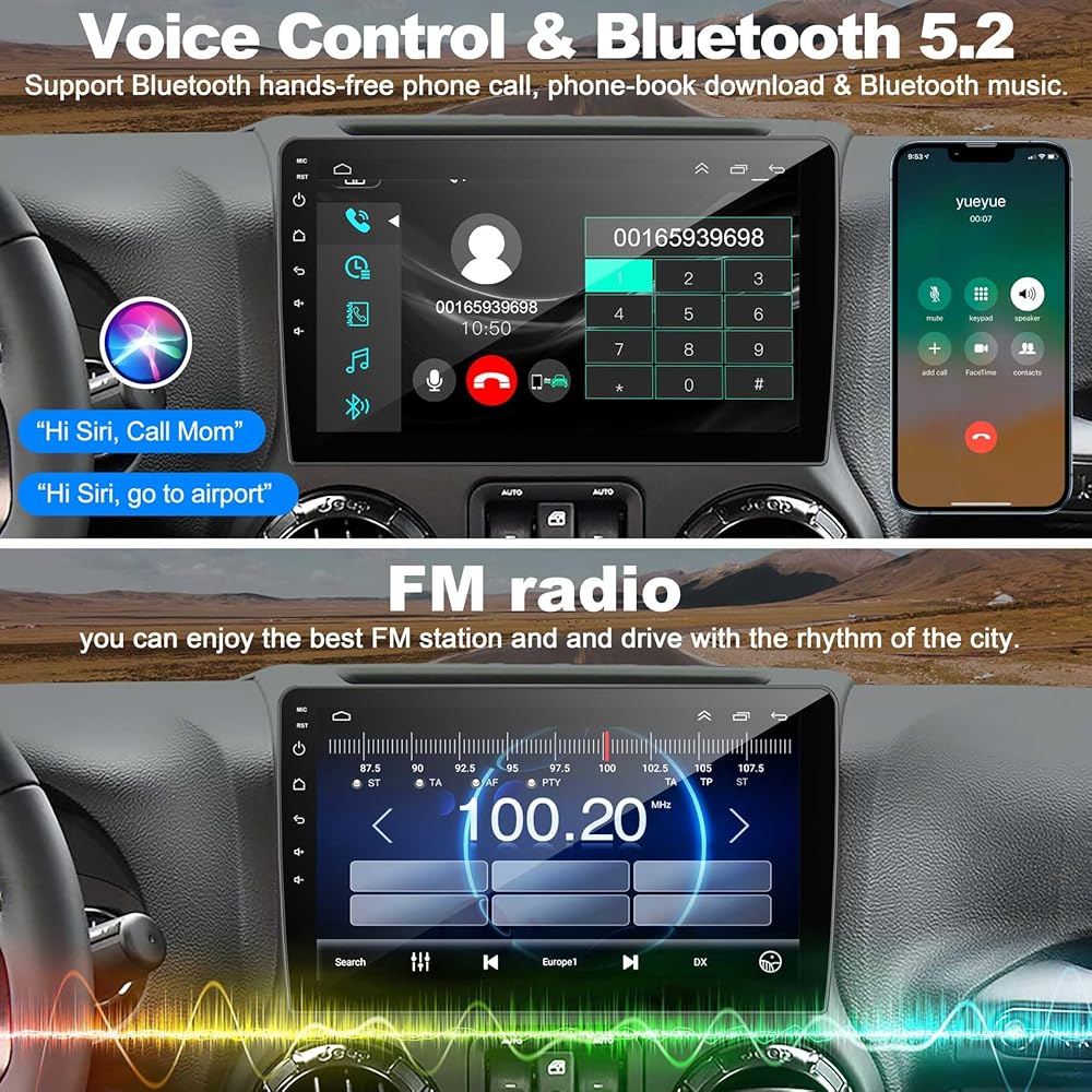 【وظيفة Bluetooth والتحكم في عجلة القيادة】 يدعم راديو Bluetooth5.2 الرد/ إجراء مكالمات هاتفية بلوتوث مع خالية من اليدين. يلتقط الميكروفون المدمج صوتك ويمكن أن يساعدك مكبر صوت سيارتك في سماع الشخص على الجانب الآخر بوضوح. استخدم أزرار عجلة القيادة للتحكم في صوت السيارة ، وهو أكثر ملاءمة للتشغيل وأكثر أمانًا للقيادة.