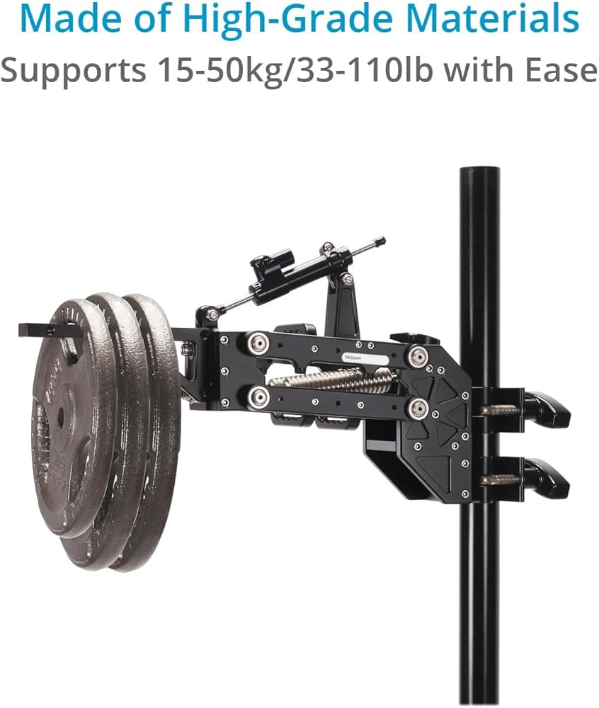 PROAIM AIR-WAVE V15 CAMERATION TOMBRATION ARM (15-50 كجم/33-110 رطل) لـ 3 محاور ورؤوس مثبتة. نظام تجميد الربيع مع ضبط دقيق