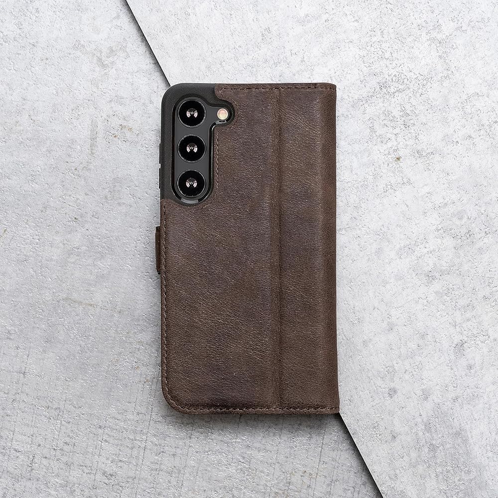 Porter Riley - علبة جلدية لـ Samsung Galaxy S24. قضية/محفظة/غطاء من الجلد الأصلي الممتاز (شوكولاتة بنية)