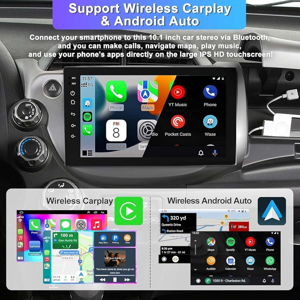 ✅【 دعم راديو السيارة اللاسلكي Carplay & Android Auto】 يتوافق راديو Fit مع Carplay السلكية/اللاسلكية و Android Auto. يمكنك استخدام هاتفك بسلاسة على شاشة كبيرة 10.1 بوصة. إنه يوفر تحكمًا ممتازًا تم تنشيطه الصوتي ، مما يتيح لك الوصول بسهولة إلى وظائف الهاتف ، بما في ذلك الموسيقى ، والتنقل في GPS ، والمكالمات ، والإشعارات ، والرسائل ، وما إلى ذلك. مع الحفاظ على يديك خالية من القيادة الآمنة!