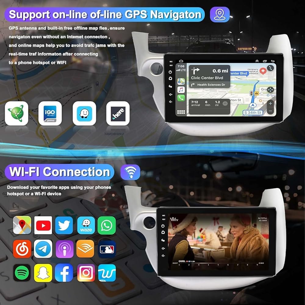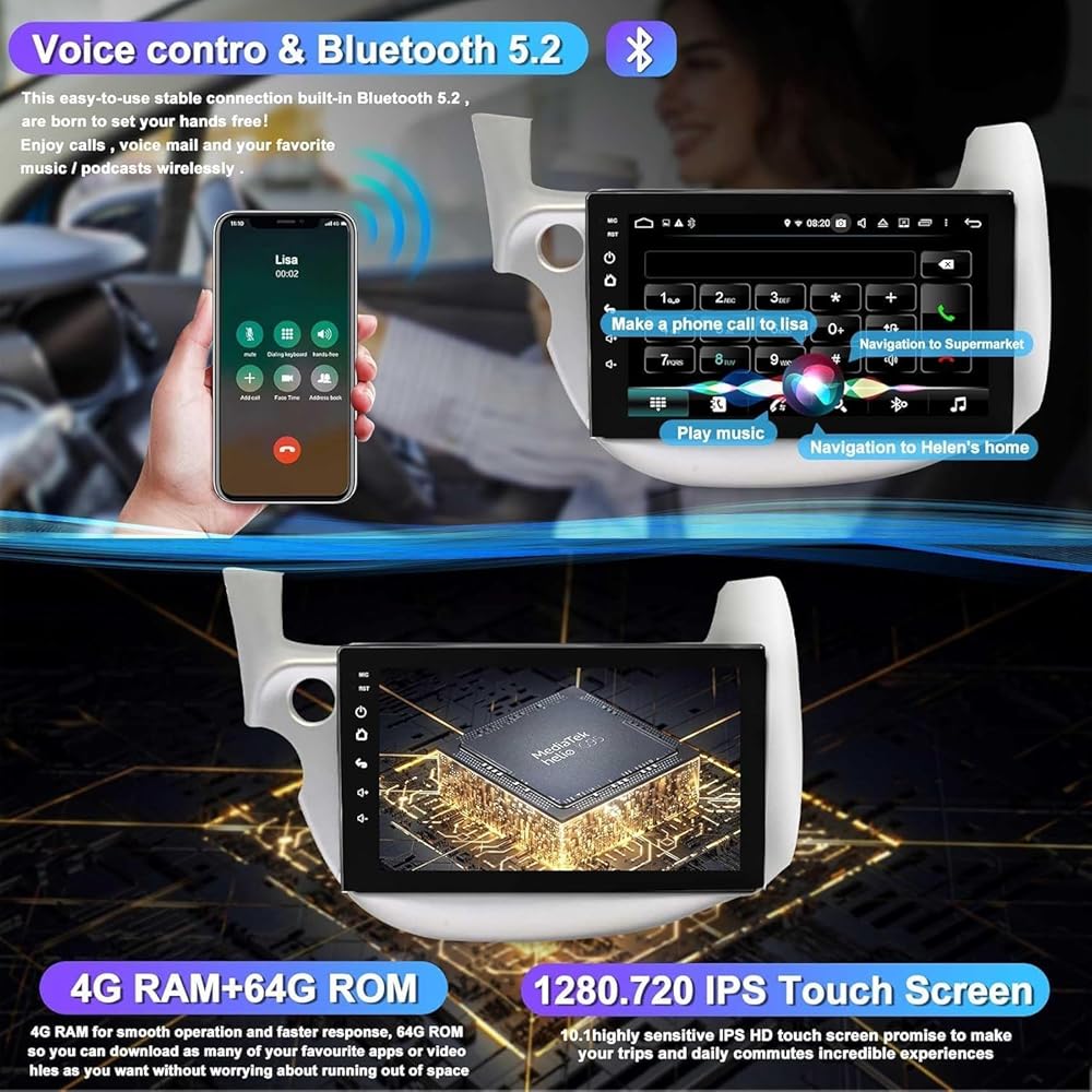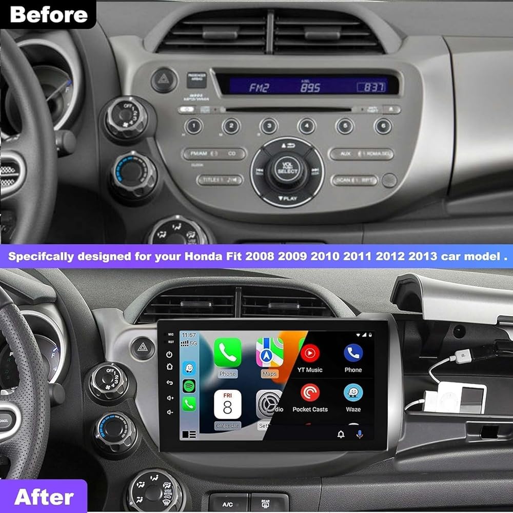 4G+64G CAR Radio لـ Honda FIT 2008-2013 مع Carpaly و Android Auto ، 10.1 بوصة شاشة تعمل بالسيارة مع GPS التنقل/Bluetooth 5.2/FM/النسخ الاحتياطي/WIFI/SWC/HIFI