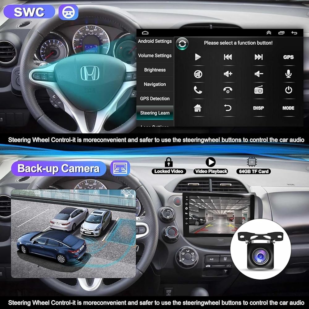 ✅【 نماذج السيارات المعمول بها وتكوين ستيريو】 هذا ستيريو السيارة مناسب لـ Honda Fit 2008 2009 2012 2012. ، اتصال WiFi ، راديو FM ، كما قدمنا كاميرا View HD الخلفية المقاومة للماء. علاوة على ذلك ، فإنه يدعم رابط مرآة الهاتف الذكي Android/iOS ، والتحكم في عجلة القيادة.