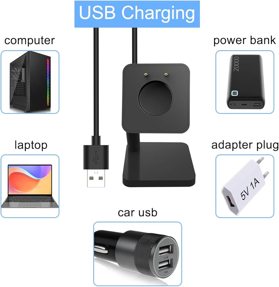 Safe Charging: This Charger dock has Voltage Regulator and PTC Inside to protect your Device being damaged by overcurrent when connected to power source. The charging base is magnetic, which can make your watch fit perfectly to the charging base, it will not fall off easily, and the charging is stable.