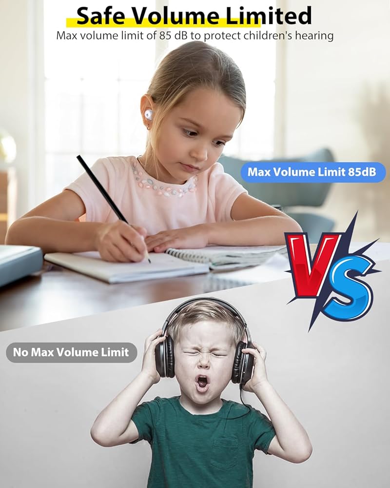 عمر البطارية الطويل ، الاستخدام طوال اليوم: مع كابل شحن USB-C المضمون ، يمكنك الاستمتاع بما يصل إلى 30 ساعة من وقت التشغيل (مع حالة الشحن) على شحنة سريعة واحدة (1.5 ساعة) ، والتي تلبي احتياجات أطفالك لفترة طويلة حان الوقت للاستماع إلى الموسيقى ومشاهدة مقاطع الفيديو والتعليم عبر الإنترنت والسفر وما إلى ذلك.