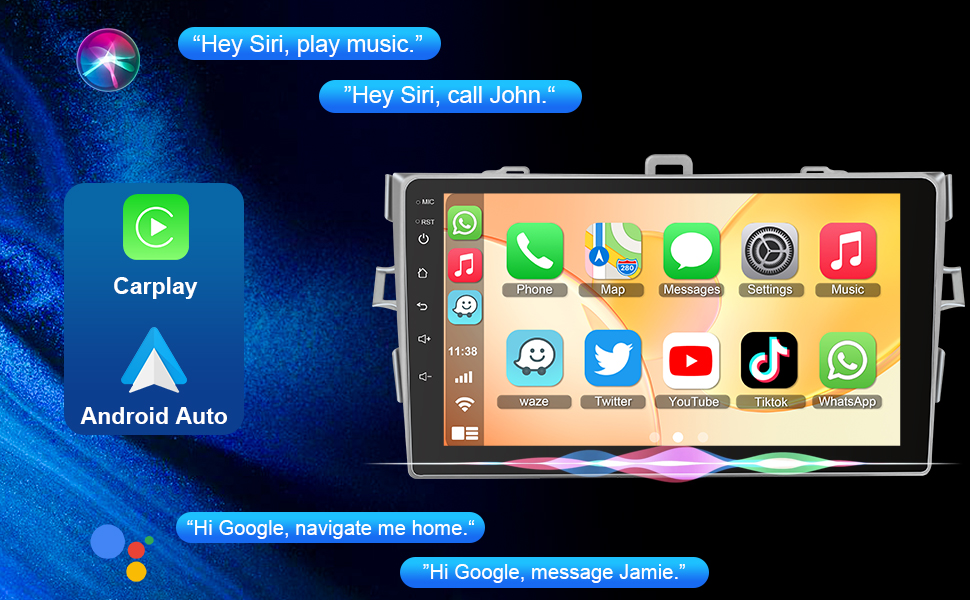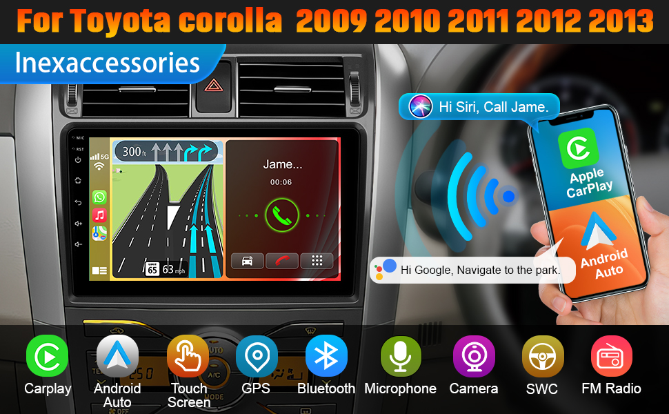 【Carplay Wired/Wireless Carplay & Android Auto】 Android 13 Car Stereo لـ Toyota Corolla 2009-2013 دعم carplay wired/wireless و Android Auto الوصول إلى تطبيقات هاتفك. يمكنك أيضًا استخدام MUISC أو GPS Navigation و Message والمكالمات وما إلى ذلك عبر الاستيقاظ من Siri أو Google Assistant ، بحيث يمكن لراديو Corolla عالي الأداء أن يمنحك تجربة قيادة أفضل.