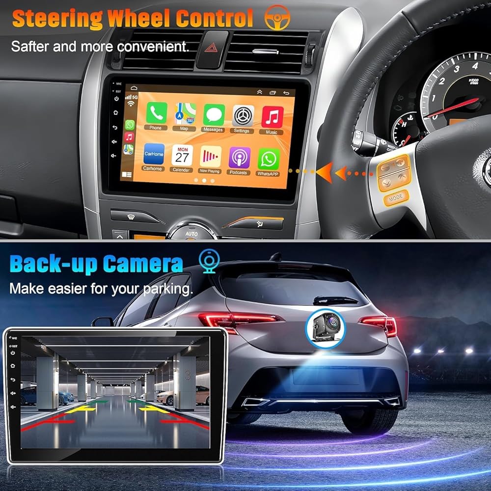 Sterroid 13 Car Stereo لـ Toyota Corolla 2009-2013 مع Carplay و Android Auto ، 9 بوصة دعم الراديو Corolla Buetooth5.2/الصوت التحكم/5G WiFi/GPS/Camera Camera/SWC/FM IPS ، 4+64GBS