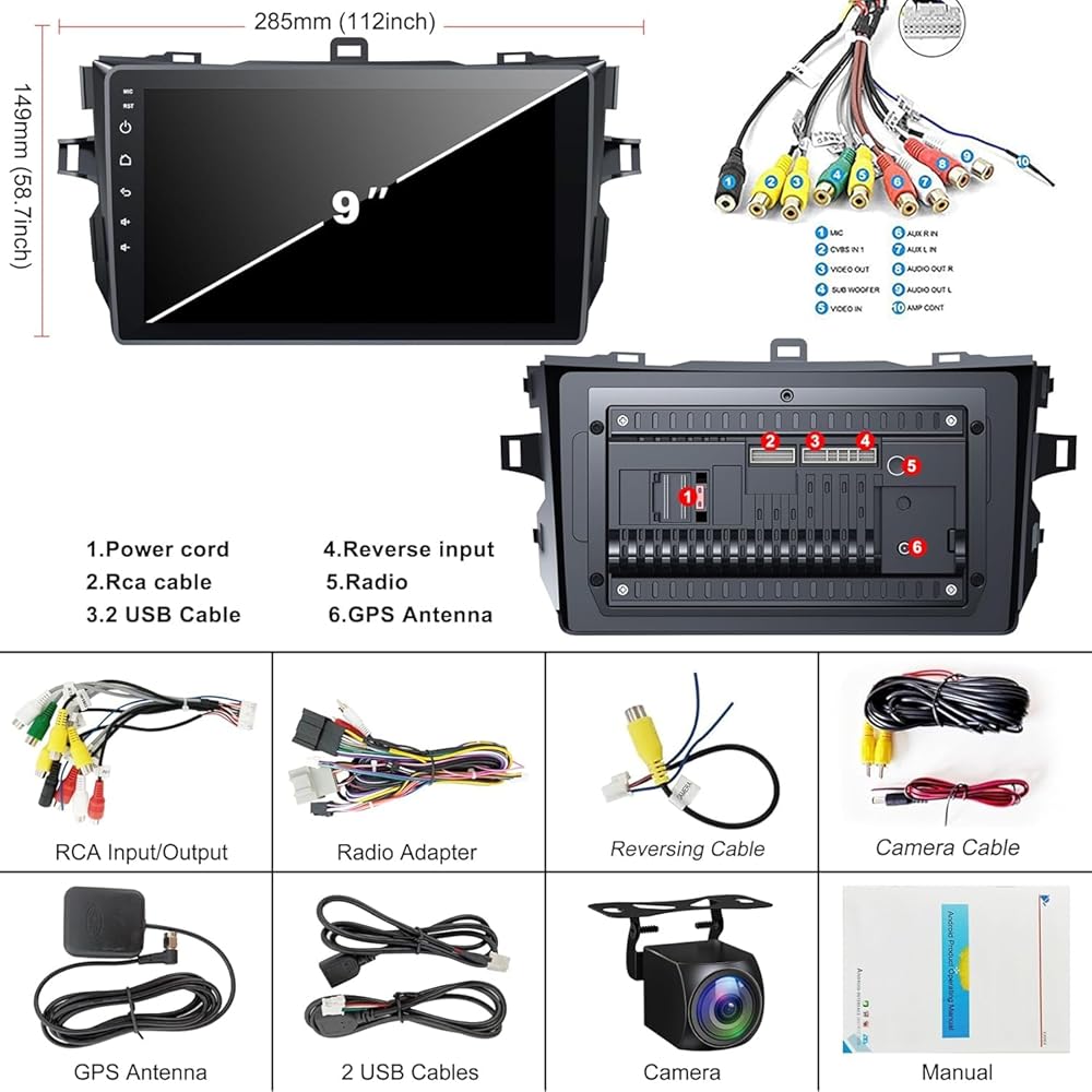 【CAR Radio To Toyota Corolla】 9 بوصات وحدة تنقل GPS Incigation Car 9 بوصة تناسب Toyota Corolla 2009 2010 2012 2013 ، ملاحظة: يرجى التحقق من طراز سيارتك وسنواتها ولوحة القيادة قبل أن تطلب استريو Corolla Car. تتضمن الحزمة جميع تسخير الأسلاك التي تحتاجها ، لذلك لا حاجة لشراء ملحقات إضافية. ملاحظة: لا يمكن لراديو Corolla دعم السيارة باستخدام JBL AMP.