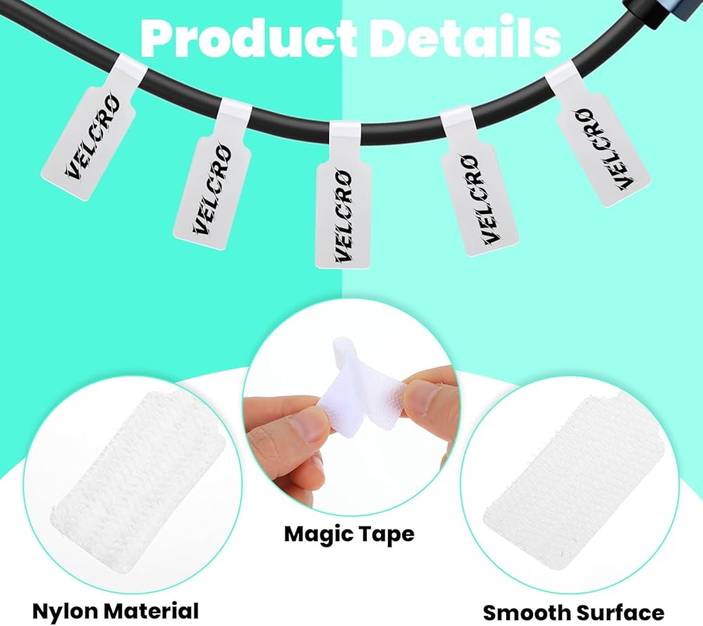 【Reliable Material】 Ethernet cable labels are made of nylon material, combined with hook and loop design, which has extremely high durability and toughness. Even during frequent tearing and reuse, cord tags labeling can still maintain stable stickiness without damage or deformation. Whether it is used in environments such as home, office or workshop, it can provide you with reliable fixing and organization effects