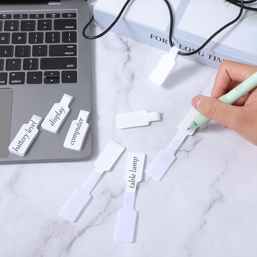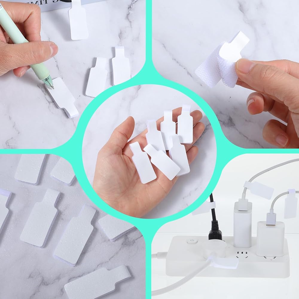 【Widely Applicable】White cable management labels can be used in a variety of scenarios. For example, you can use cable labels to organize stationery on your desk, neatly bundle wires, or secure the parts of a package. The versatility of cord labels makes them a must-have gadget in your home and office, helping you keep your environment tidy and organized, avoid clutter, and improve efficiency.