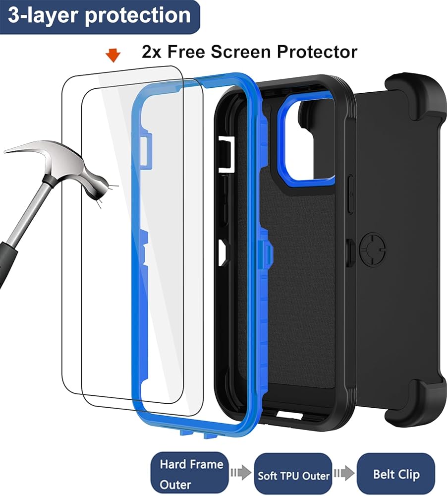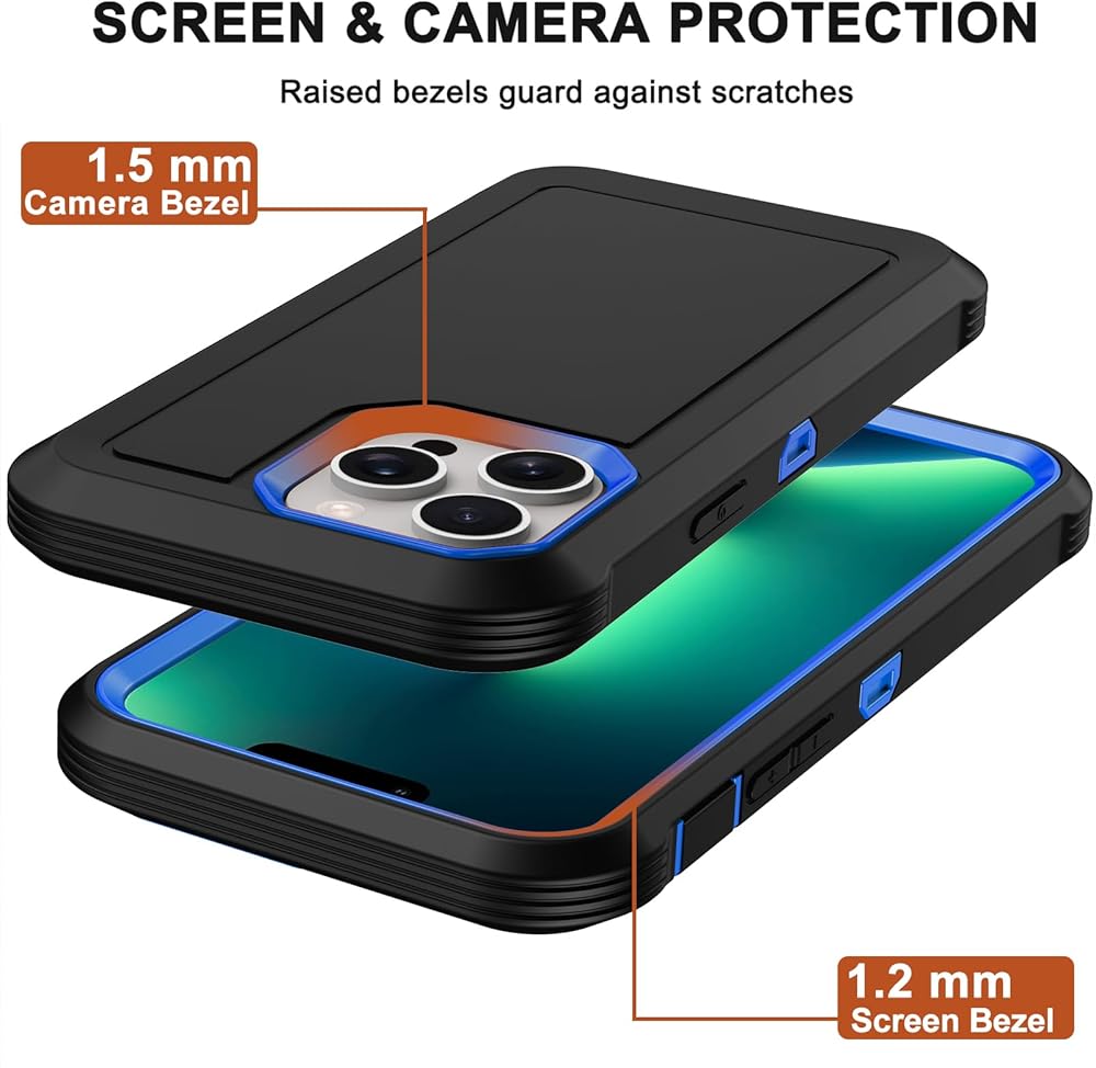 Safe The Back Camera And Screen: Raised edges protect camera and screen plus non-slip edge design for secure grip and dust-proof port covers to keep out dirt, the rugged for iPhone 13 Pro Max shockproof belt clip case made for any adventure