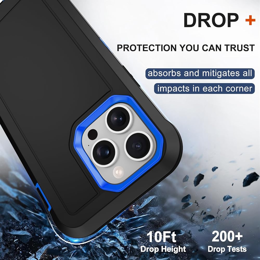 Military Grade Protection: 2 in 1 dual layer iPhone 13 Pro Max phone case provides 360 degree full body coverage protection. Premium hybrid hard Polycarbonate (PC) + soft Thermoplastic Polyurethane (TPU/Silicone). Meeting Military Standard & Well protecting your phone against up to 3m (10 feet) high drops